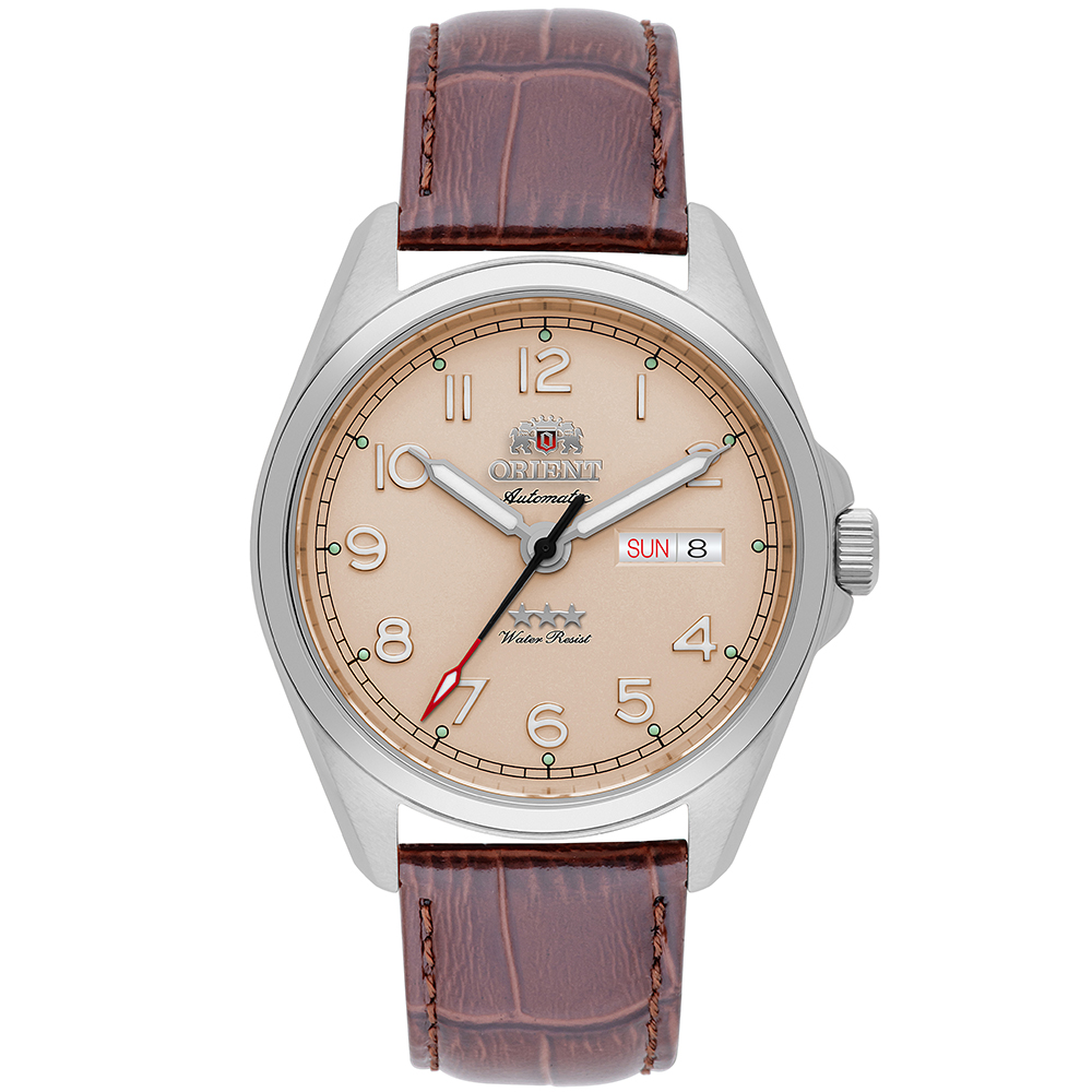 O Orient 3 Estrelas Elegance YN6SC006 traduz a elegância clássica com um toque contemporâneo: mostrador bege de leitura limpa, ponteiros bem definidos e o icônico trio de estrelas que carrega a tradição da Orient em confiabilidade mecânica. É uma peça discreta, versátil e com presença refinada — perfeita para quem valoriza sofisticação autêntica no dia a dia.